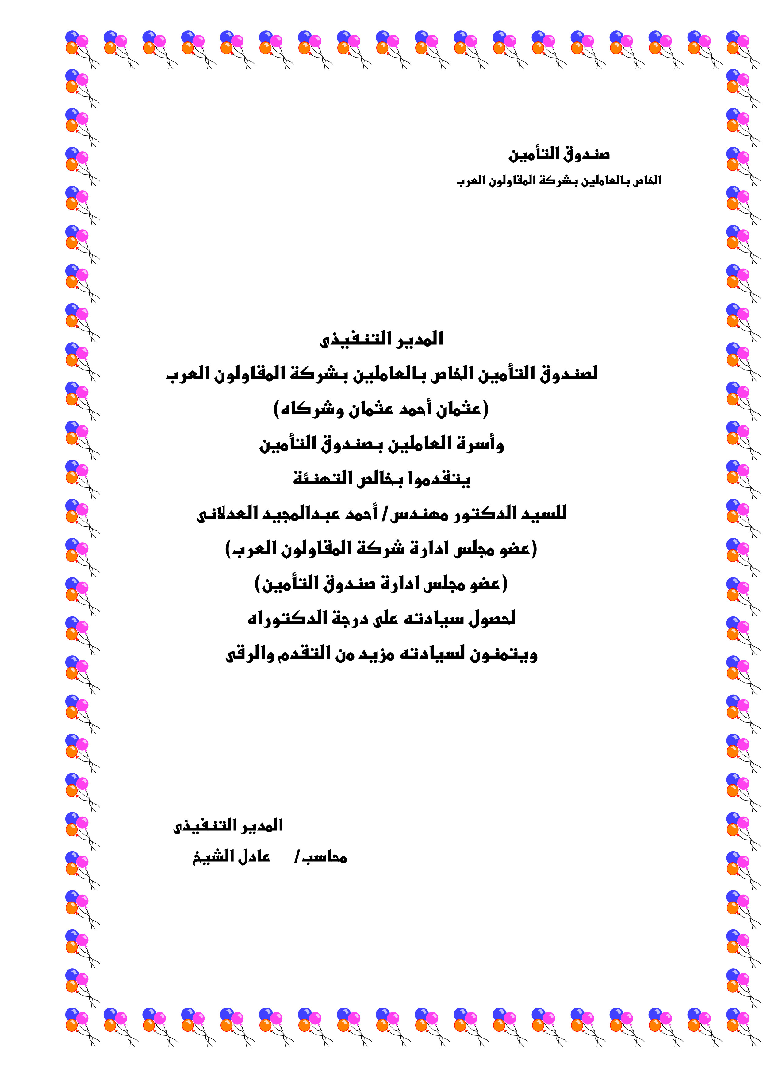 للسيد الدكتور مهندس / أحمد عبد المجيد العدلاني
